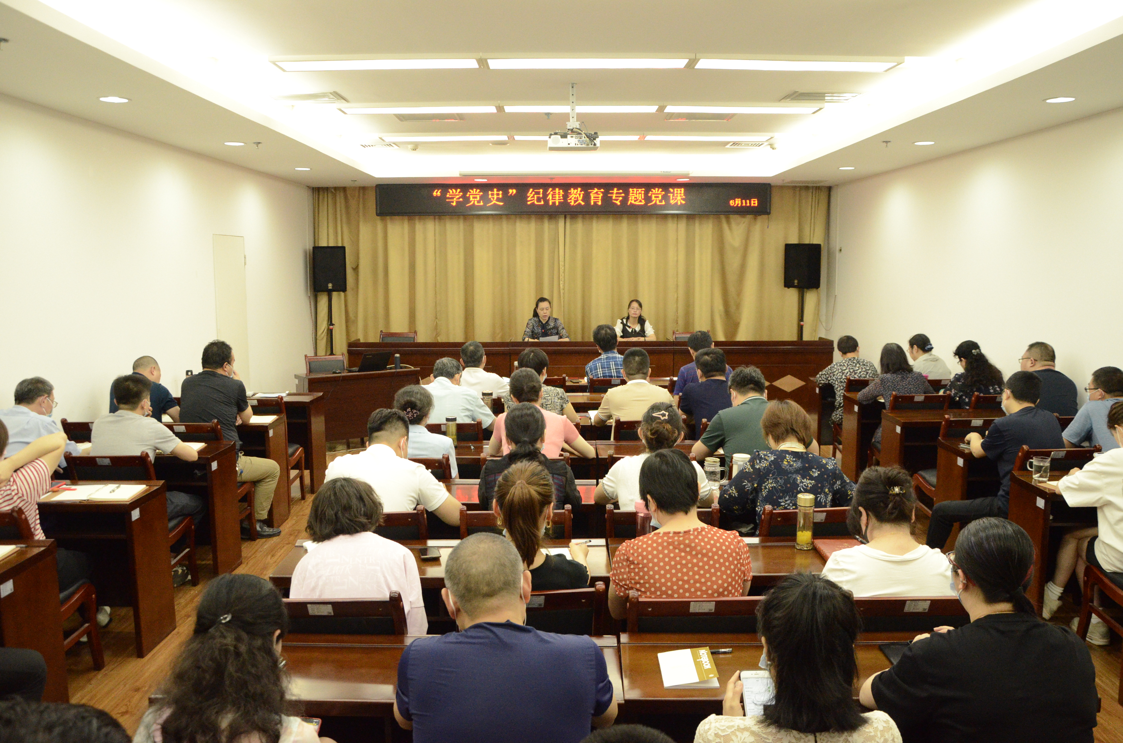 6月11日上午,我院根据省局关于开展第四个纪律教育学习宣传月活动的安排,专门邀请省委党校副教授王群燕老师为全院党员干部讲授了一堂题为《中国共产党百年辉煌成就与纪律建设历程》的专题党课。