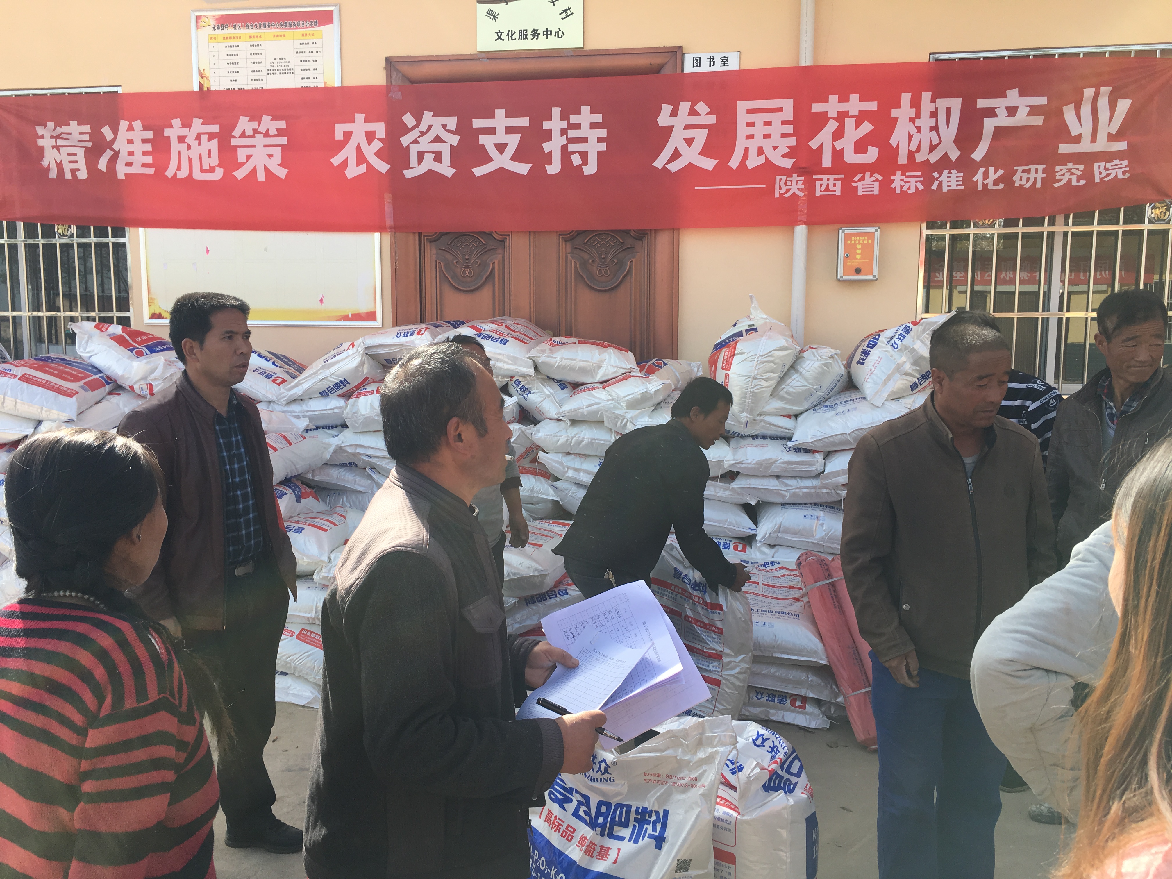 近日,陕西省标准化研究院投资5万元为永寿县渠子镇洛安村送去化肥、地膜等农资产品,支持该村发展花椒产业,这是省标准化研究院推动落实千亩花椒种植产业帮扶计划的又一重大举措。目前,500亩花椒已在洛安村栽种完毕。