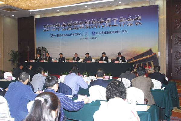 2012年4月13日至14日,全国组织机构代码工作会议在山东济南胜利召开。全国组织机构代码管理中心、19个省(市、区)质监局领导和全国46个省市级组织机构代码管理机构的 180多名代表参加会议。