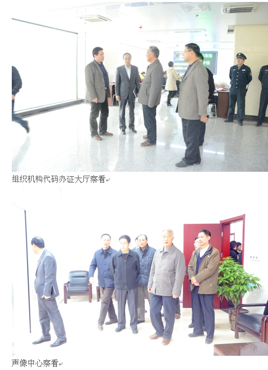仵局长一行首先来到我院,在院领导的陪同下,对二、三、四层逐层、逐个办公室一一察看。每到之处,领导们都仔细查看,详细询问,特别是针对我院组织机构代码管理中心办公大厅、国家标准馆陕西分馆、信息中心和条码管理中心等部门的工作流程和仪器设备的安装要求逐一用心了解。