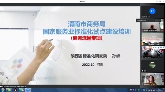 近日,我院受渭南市商务局邀请,安排专家对渭南市商务部门相关人员及商贸流通企业负责人等80余人进行了标准化知识网络培训。这是我院承担渭南市国家级商贸流通服务业标准化试点建设咨询服务项目后,积极克服疫情带来的不利影响,按计划扎实做好前期性、基础性工作的重要环节。