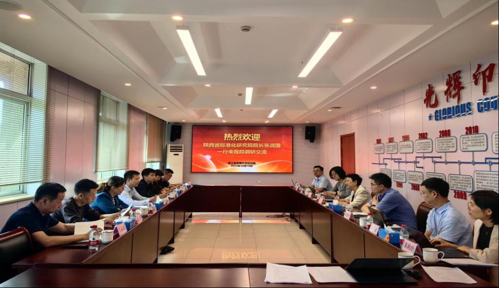 10月18日,陕西省标准化研究院党委书记、院长张战国一行到浙江省质量科学研究院标准化研究中心调研标准化中心建设和发展情况。浙江省质量科学研究院党委委员、副院长、纪委书记徐高清参加座谈。