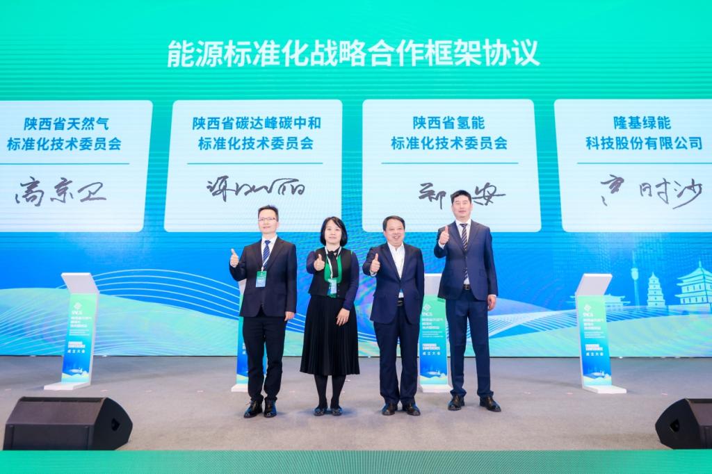 会上,陕西省碳达峰碳中和标准化技术委员会、陕西省氢能标准化技术委员会,隆基绿能科技股份有限公司,陕西省天然气标准化技术委员会四家单位签订能源标准化战略合作框架协议,多方将在30/60目标框架下,携手开展体系建设、标准研究、学术交流,共享人才、数据、渠道,携手推动陕西省天然气行业高质量发展。