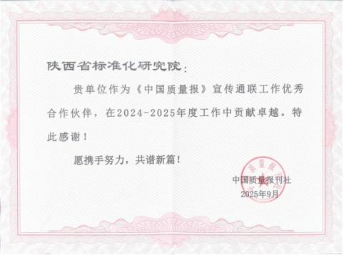 9月25日,中国质量报刊社在陕西延安市召开了2025-2026年度《中国质量报》宣传通联工作座谈会。对宣传通联工作优秀合作伙伴、优秀通讯员予以通报表扬,陕西省标准化研究院获评“优秀合作伙伴”受到表扬。
