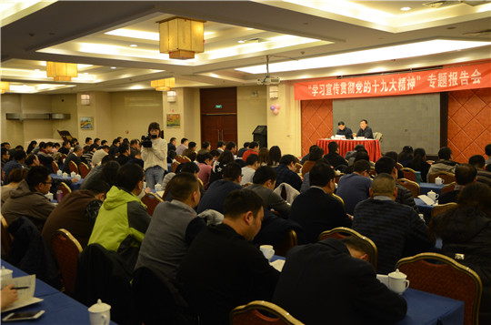 为深入学习宣传和贯彻落实党的十九大精神,把广大干部职工的思想统一到十九大精神上来,凝心聚智、奋力推动质量工作迈向新时代。11月30日下午,“学习宣传贯彻党的十九大精神”专题报告会在高速神州酒店召开,省局巡视员魏恒星同志做专题辅导,省局党组成员、副局长李晋利主持会议,省标准化院、省特检院全体干部职工及省局部分机关处室参加了报告会。